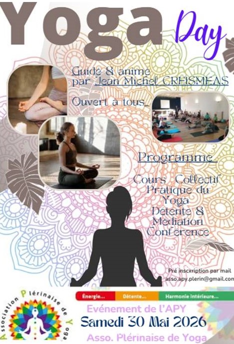 L'Association plérinaise de yoga propose une journée de yoga animée par Jean-Michel Creisméas le samedi 30 mai 2026. Le thème des deux séances de pratique et de la conférence sera communiqué prochainement. Réservez dès maintenant la date dans votre agenda !